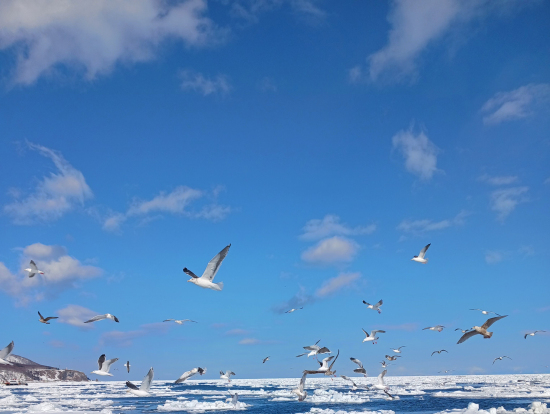 知床羅臼 流氷クルーズ&バードウォッチング 船の上からオホーツク海の流氷と知床半島で生きる天然記念物オオワシやアザラシを観察<1~3月/羅臼町>★★★★★