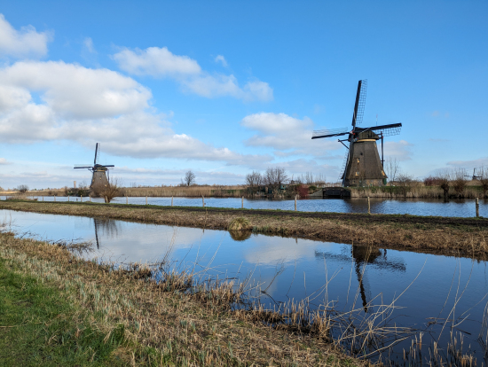 キンデルダイクは冬季休業のため施設内見学は叶いませんでしたが、散策するだけでも美しい光景に見惚れてしまいました。想定よりずっと近くまで風車を見学することができ、大満足でした。