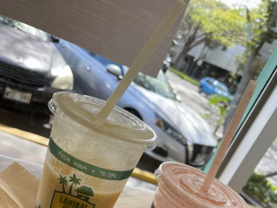 最初にカイルアのホールフーズをうろちょろし、物価調査!コロナ前よりだいぶ上がった?以前はホールフーズのエコバックをお土産に結構購入しましたが、今回はスルー。その後、ウロウロしたせいか喉が渇きせっかくなので道を渡り、ラニカイジュースで私はパシフィックパッションなるジュースを。日本語メニューもあるので心配なく。