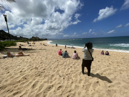 そしてお腹も満たした後は、サンセットビーチでウミガメを見た後はハレイワの街へ。なぜか、シェーブアイスを食べたいとも思えず、散策もしましたが、買いたいものも見つからず。待ち合わせ場所のパタゴニアも限定品がありましたがスルー。物価高、円安頭が購買意欲を無くしているのかも。