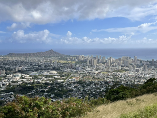 さっさと散策したおかげでまだH1ハイウェイが混んでいないことから、ハワイ大学の購買へ移動。最近はタブレットなどで授業を受けるせいか、以前大量に売っていた、ノートや筆記具の棚は何もなし。結局何も買わずに出たことからまだ時間が余っていたので、タンタラスの丘の一番上の展望台に。夜景では有名ですがこの場所へは夜間は来れないので素晴らしい景色を楽しみました。ここは車上荒らし要注意とのことで、サクッと写真を撮って、ワイキキ方面へ下山。ホテルに帰る途中でレナーズがあるので、購入し出来立てほやほやのマラサダを手にホテルへ。予約した8時間ぴったりに着きました。