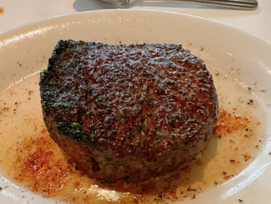前菜にシーザーサラダ、サイドにガーリックシュリンプ、メインはフィレステーキを注文しました。