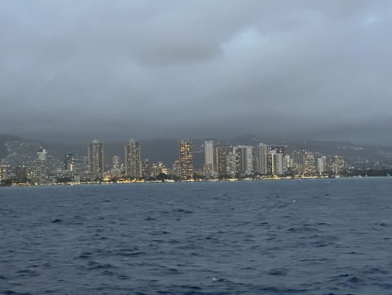 約40年前は家族4人で参加、とても楽しかった思い出があり、申し込んでみた。今回は子供も独立し、1人での参加になった。不安はあったが席に案内してくれた中年の女性の差配が余り芳しく無く私の他に若い日本人の女性と中年のアメリ人男性の3人、席は6人掛け。どうしようと思ったが開き直り自由に過ごすことに、それが返ってよく歌や音楽やタヒチアンダンスを楽しめた。会場も結構盛り上がり盛況であった。料理も美味しくお腹も一杯になった。船上から見る島の景色も素晴らしく、花火も綺麗であった。円安152円(仲値)が無ければもつと良かった。