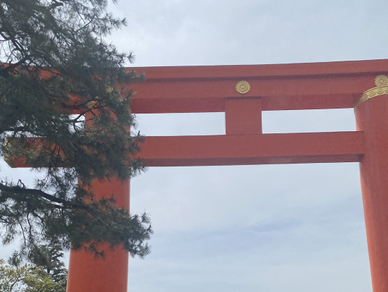 歩道橋の下、平安神宮の大鳥居の下、見上げると、感覚が近い。