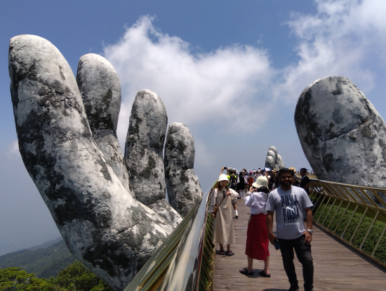 テレビでバーナーヒルズのゴールデンブリッジを見た時から「行ってみたい!!」と思っていました。念願叶い、実際に行くことが出来てとても良かったたです。やはり実際、目の前にすると迫力満点で、何だか不思議な空間でした。やはり「神の手」!です。ただ、人気観光スポットなので、かなり混雑してました。そしてもう一つ行きたかった場所、ホイアン!ここも本当に良かったたです。買い物も楽しめるし、夜のランタンや町中にあふれる灯りが本当にキレイでした。この2箇所がセットになったツアーはオススメです。