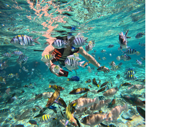 海の透明度の高さと綺麗な熱帯魚の多さに驚きです。