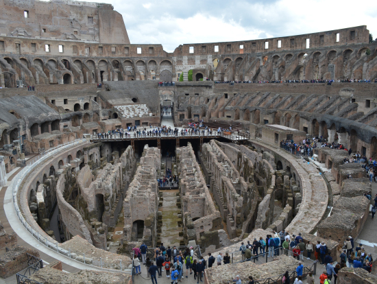 宿泊先のホテルがコロッセオに近かったので徒歩でまわりました。当日は祝日と週末の間でしたが、大変な人の数で上手く入場できるか心配でしたが、ガイドさんのおかげでスムースに入場でき、コロッセオ、フォロ・ロマーノ、パラティーノの丘、トレビの泉と徒歩でまわることができました。