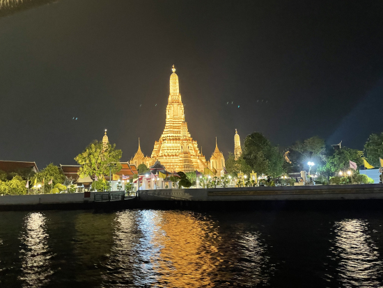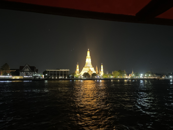 速度も遅すぎず、早すぎず、丁度良い感じですすみました。途中、ワット・アルンのライトアップの場所で速度を落としていただけ、写真もスタッフの方に撮ってもらえました。