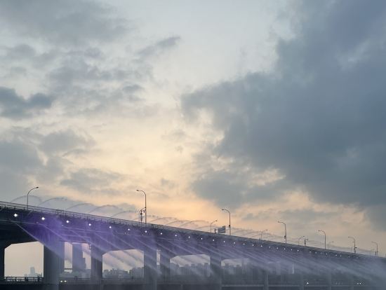 5月24日にこのツアーに参加しましたがソウルはこの時期、日が暮れるのが20時頃なので盤浦大橋に設置された噴水「ムーンライト・レインボー噴水ショー」は少し色が付いてるぐらいにしか見えませんでした。