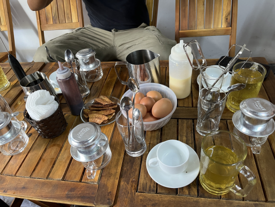 可愛いカフェの2階で、クロエさんからベトナムコーヒーの淹れ方、卵やお砂糖の分量や泡立て方など、ていねいに教えていただきました。