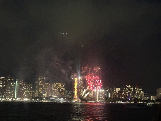 ヒルトン花火は日本の花火に比べると物足りないものでしたが、初めての海から眺めるワイキキの夜景はとても綺麗で素晴らしく見飽きることなくあっという間に時間がたちました。ベルトラのツアーはまた日本でも利用したいと思います。