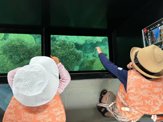 子どもたちも私もグラスボートで海の様子を眺めながらクルーズ気分を楽しんでいたらあっという間にはての浜へ上陸しました。