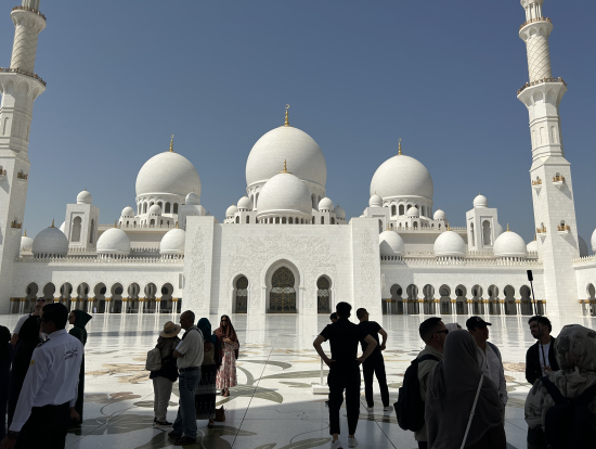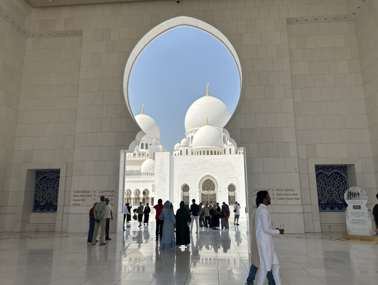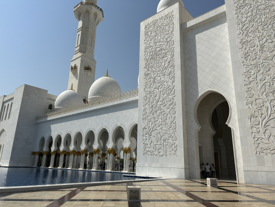 グランドモスクは歴史は浅いものの圧倒的な景観でした。一見以上の価値があります。モスクに入る衣装についても、持っていかなくても調達できる所によってくれます(もちろん自費で購入ですが)。他、アブダビツアーで他にも色々寄ってくれます。