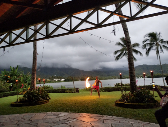 ・「ディナーとフラショー」ということで、ポリネシアン文化センターやワイキキでのルアウショーなどの参加はありましたが、今回は、まったく違う体験でした。