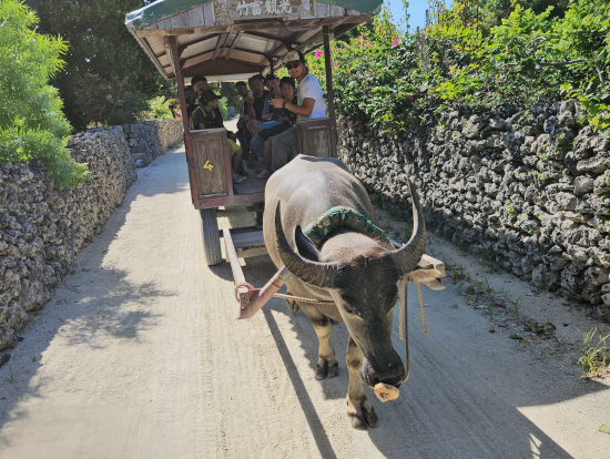 ガイドさんが島の歴史を語ってくれたり、三線にあわせて唄ってくれたり、水牛と記念写真が撮れたりと、満足な内容でした。