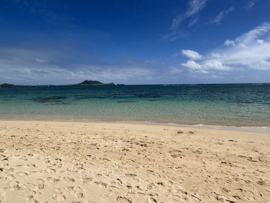 お店に到着後、スタッフのなつえさんから説明や注意事項を聞き、すぐに自転車とオプションのシュノーケリングセット、ゴザを借り全米で一番になったこともあるラニカイビーチへ。自転車で10分ほどです。人も少なく、静かで本当に綺麗なビーチでした。シュノーケリングをしましたが、海岸近くでも珊瑚の周りに熱帯魚を沢山見ることが出来ました。残念ながらホヌ(海亀)には出会うことは出来ませんでしたが、運が良ければ出会えるそうです。