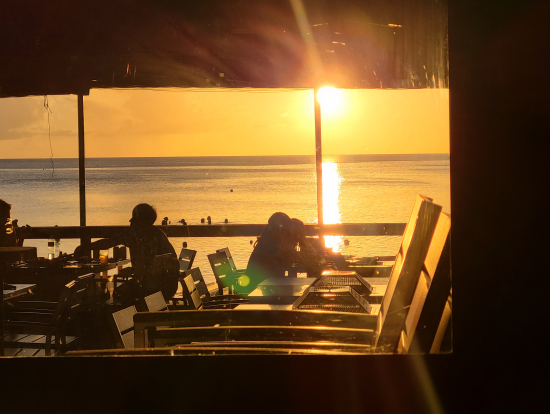 座席はこちらのコースだとテラス席ではありません。テラス席はバーベキューのコースで利用するようです。とはいえちょうど日が沈みはじめ、きれいなサンセットを見ることはできました。
