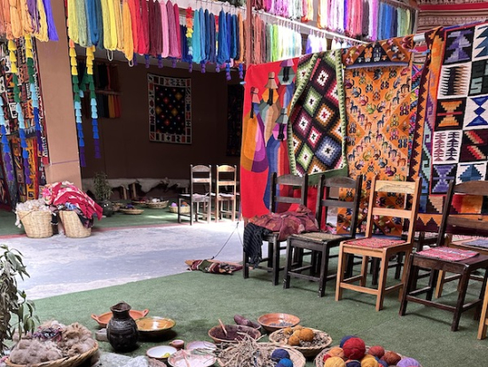 チンチェロの遺跡を散策したあと、チンチェロの文化紹介施設やユカイ村のテーマミュージアム/ユカイ博物館でインカの織物、染色技術、チチャなどの実演と話を聞きます。村ごとに衣装の色使いが異なるなど、なかなか興味深い内容でした。