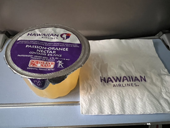 機内で出たジュースが美味しかった、と喜んでました。