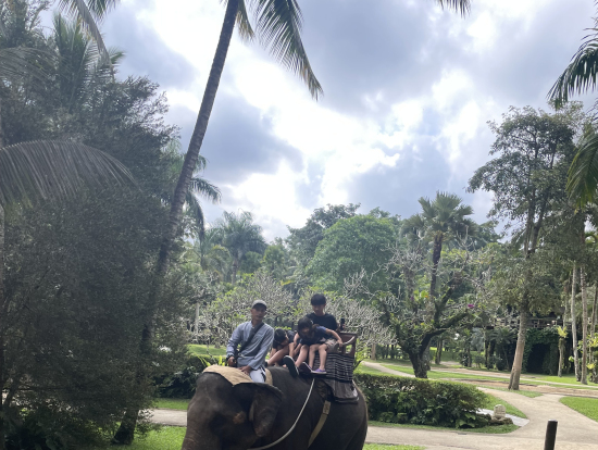 象乗りは子供たちは大興奮でした。いつも遠くから見てるだけの象に触れたり、乗ったり。現地の係員が良い写真を撮るために象に指示を出してかっこいい写真が撮れました。