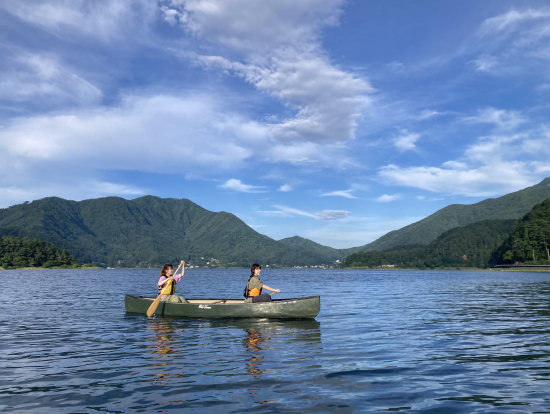 早朝カナディアンカヌー体験 朝の富士山と自然を湖上から堪能! 写真データのサービス付<6:00~/3歳~/2名~/山梨・河口湖>★★★★★