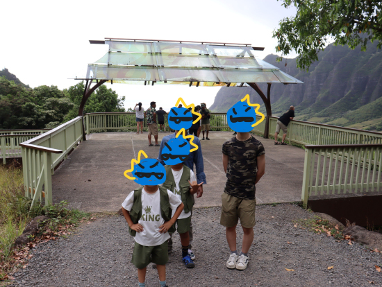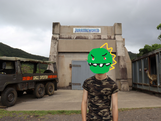 でも、ガイドさんがこのシーンですよと場所場所でタブレットを見せてくれたし、家族写真もずっと撮影してくれました。ガイドさんは恐竜のフィギアを持っているのでケータイでなら襲われてる風に撮ってくれます。