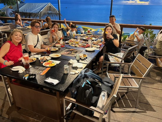 大きな肉や、ロブスター、カキなどおいしくいただきました。時間いっぱいBBQを楽しみ、翌日からはプールを堪能しました。