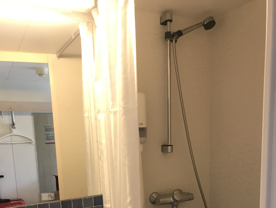 シャワーとトイレの境目がないので、部屋ではクロックスやビーチサンダルがあると便利だと思います。清潔なバスタオルとフェイスタオルが2人分ありました。ちゃんと風がでるドライヤーもついています。洗面所には歯磨き用の紙コップがついてました。