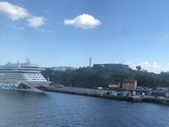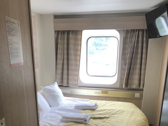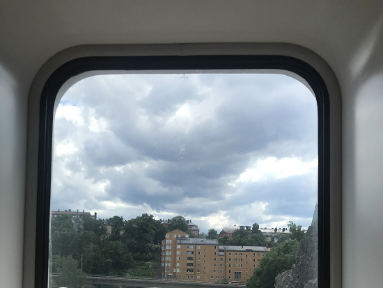 フェリーの様子はというと、写真で見た想像よりお部屋の窓が大きくて、窓枠のところに座って外を眺めることができました。写真は9階の部屋でした。群島やサマーコテージの景色は最高でした。