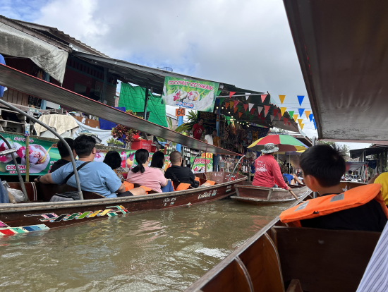初めてのタイ旅行。『行きたいけど、バンコクから遠いな~』と思っていた場所が、滞在中にツアーで予約が取れたので夫婦で参加。日本語の分かる穏やかで優しいガイドさんが付いてくれたので安心して、多国籍の方達と一緒に効率よく観光を楽しむ事が出来ました。参加者全員での写真撮影もあり、エアードロップで貰らえたので良い思い出も増えました。鉄道市場も水上マーケットもガイドブック通りでたくさんの人達で賑わっていて楽しかったです。