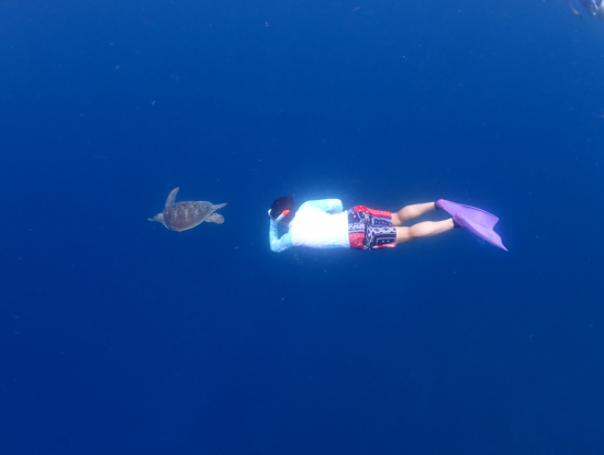 これまでにも宮古島、ハワイ、モルディブなど色々な所でシュノーケルツアーに参加して来ましたが今回のカフーさんのツアーが海の状態もホスピタリティも1番良かったです!事前に細かくこちらの要望を聞いて頂けた事から始まりツアーが始まってからも中学生の息子のサポートから写真撮影ビデオ撮影と沢山のサービス、お昼ご飯も温めてくれて船の上でこんなに美味しい物を食べれるなんてと息子達と感動しました!ポイントもたくさん回って頂きスキンダイビングの指導も上手く初めてでも十分過ぎるほど潜らせて頂きました。また是非参加したいです。皆さんにも是非カフーさんのツアーをオススメします。
