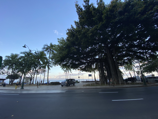 ハワイの早朝は恵みのシャワーこと小雨が付きものだそうで、体験した日も弱い雨が降ったら止んだりしていましたが、そのおかげもあってレッスン中には虹を見ることができました。