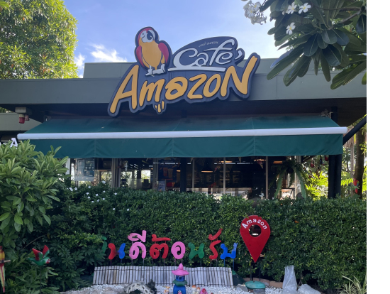 トイレ休憩で立ち寄ったところにAmazoncoffeeがあり、アイスカフェラテがとても美味しかったです。ナーさんが買ってくれたバナナの天ぷらも美味でした。