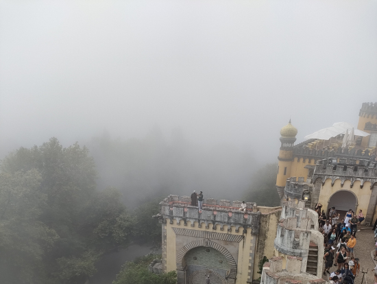 最初の目的地はペーナ宮殿。9時前には到着。駐車場から宮殿の入口まで歩いていくかシャトルバスで行くか聞かれ、我々のグループは全員バスを選択。宮殿の入場の列に並びながら、交代でシャトルバスのチケットを自動券売機で購入した(1人往復で3ユーロ)。