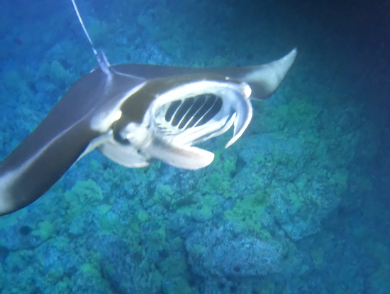 円安で高いため悩みましたが、小学校低学年の子供と参加するため、日本人スタッフがいる点、また,高齢者も居るため、見学参加できる点でこのプランを選びました。日本人スタッフが乗船する曜日は予めマンタ大学の公式サイトで確認してから申し込みました。前日は20枚ほどのマンタがきてくれたそうですが、参加日は3、4枚でした。が、近くで大きく口を開けてクルクル宙返りをくりかえす様子は、他の地域では体験できない素晴らしい時間でした。日本人スタッフが甲斐甲斐しくサポートをしてくださったし、GOproで撮ったマンタの画像を共有してくださり、有り難かったです。ただし、見学参加はあまり意味がなかったようですので、ホテル待機でも良さそうです(店舗での待機が可能かはわかりませんが、無人になるのでオススメしません)。往復ウーバータクシーにしましたが、復路は、店舗の灯りがほのかに届くだけの暗闇で20分ほど配車を待ちました。それを許容できるのであれば、全く問題はなかったです。ホテルの場所によっては送迎付きプランはかなり高くつくので。ちなみにウーバー利用は私たちだけでした。