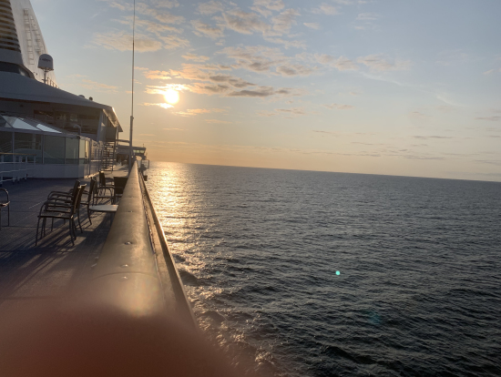 天気が良く、夕陽や朝日をデッキからみることがら出来た。ずっとみていても飽きない程でした。