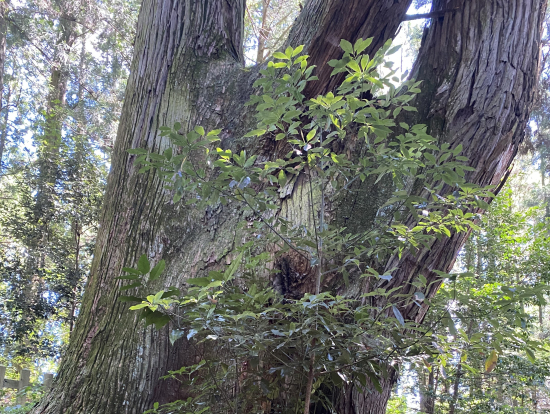 階段を使わずに坂道コースを選ぶとこの五百枝杉があって素敵でした。