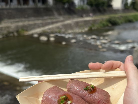 そのおかげで、美味しい肉寿司が食べれましたし、朝市にもいけました。