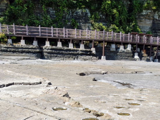 台風一過の晴天で、すばらしい恐竜の足跡化石を堪能できました。広い敷地の中、遊歩道の行った先まで車で迎えに来てもらえて、とても助かりました。