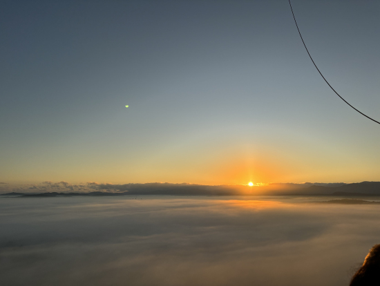 朝日に合わせて飛ぶ熱気球に乗りました。