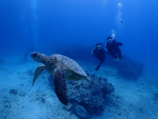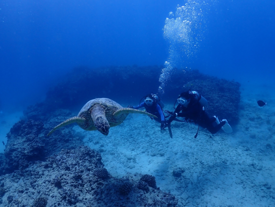 ダイビング前のレクチャーは陸と船、潜る直前まで丁寧に教えてくださり、海に入ってからは、呼吸や耳抜きが出来るまで自分のペースにあわせて、しっかりサポートして進めてくださるので、未経験の人でも無理なく安心して潜ることができました!
