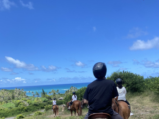 バスはホテルの近くから送迎があり、車内も快適でした。現地に着くと、日本人のスタッフが丁寧に説明してくれたので、不安もなく楽しむことができました。乗馬は全て英語でしたが、こちらもスタッフの方がとても優しく、絶景を見ながらの乗馬はかなりリフレッシュになりました。また機会があればぜひ行きたいです!