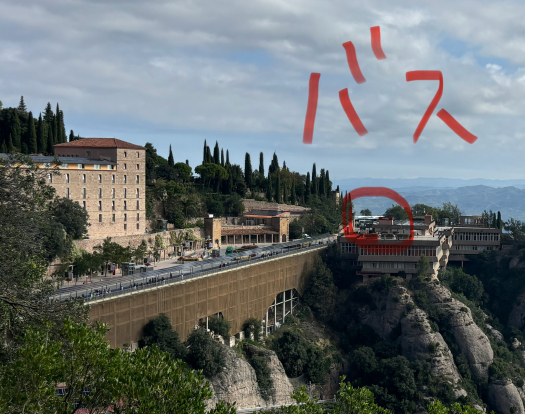 Julia Travel会社が催行会社で調べたら英語での体験談も確認することができます。大きなバスステーション内のオフィスが集合場所になります。集合時間7:45ギリギリに催行会社スタッフがやってきて部屋の明かりが付き、チェックインが始まります。ツアー客全員に緑色のナップサックが貰えます(目立つのでツアー中の目印にもなります)Julia Travelと書かれた大きなバスに乗って1時間ぐらいで登山列車に乗り換えます(進行方向左手の方が景色が良いです)。モンセラットについて直ぐに帰りの集合場所と時間のアナウンスがあります。今回のツアーでは12:10(ワン・ツゥー・ワン・ゼロ)と分かりやすく伝えてくれました。モンセラットのバス駐車場は1カ所ですので迷わないと思います(他ツアーバスが沢山停車しているバス駐車場横の広場に集合)。ただ添乗員さんは集合時間ギリギリに来て緑色の傘を広げるのと、帰りのバス(我々を登山列車駅に降ろした後、そのままモンセラットで待機しているのでは無く、他の集合時間のツアー客を乗せに一度市内のバスステーションに戻っていますので)帰りの集合時間(前)にモンセラットのバス駐車場に帰りのバスが待機していない可能性があります(早めに集合場所に向かうと不安になります)。実際モンセラットの上り山道が渋滞していて、集合時間から1時間遅れてバスが来ましたので、このツアーの後のスケジュールは時間に余裕があった方が良いです。拝観に話を戻しますが、モンセラットに着いてからはゆっくりと各所、時間をかけて英語とスペイン語を交えて解説してくれますが分からなくても大丈夫です。大聖堂へは、個別にチケットを貰うわけでは無く、グループ入口から入館します。黒いマリア像を見る列に並んだ時点で添乗員さんとは一度お別れで、そこから自由時間です。列に並んでから15分くらいで黒いマリア像にたどり着いて、その時点で1時間半程度の自由時間がありました。私は対岸の十字架のサンミゲル展望台まで行ったので往復40分くらいは掛かりました(かなり歩く必要があります)。またコグホイールと呼ばれるケーブルカーで一段階上の駅からの眺めを見る事もできます(実費)。自由時間を鑑みるとサンミゲル展望台かケーブルカーに乗るかのどちらか片方ですね。もちろん大聖堂を満喫するのも良いかと思います。英語のツアーですが安く安全に行けますのでお勧めできます。