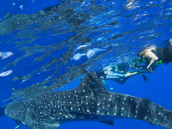 しかも、幸運なことにこれだけでは終わらず、同じジンベイザメが再び船の近くへ!再度皆で飛び込み、1回目より長い時間ゆっくりと一緒に泳ぐことができました。家族も全員、至近距離でみることができ、一緒に泳げて大興奮でした。かなりレアな出来事らしく、スタッフさんも初めて見たと騒いでいるくらいだったので、とてもラッキーでした。その後、亀の場所へ移動し、小さな亀やとても大きなエイ、綺麗な魚も見れてとても楽しかったです。ジンベイザメと泳ぐベストショットも撮ってもらえて一生の記念になりました。ありがとうございました