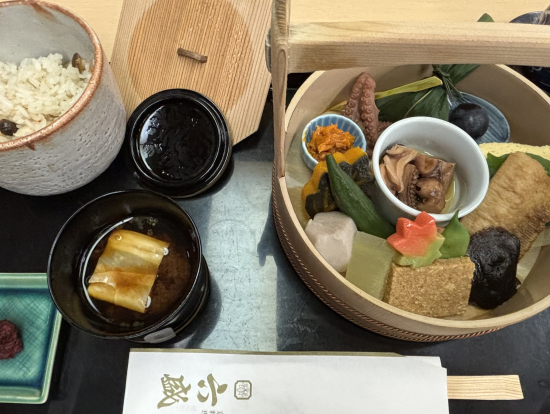 お昼ご飯の六盛での手桶弁当はボリュームもちょうどよく、色々な物を少しずつ食べることができてとても美味しかったです。