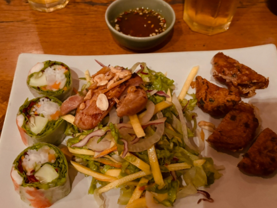下船後、夕食は、内装がオシャレなプロパガンダ ビストロ レストランへ。実はここ、NHKの某世界の素敵なモノを探す海外紀行番組でも紹介されたレストラン。客層は、ヨーロッパ系の観光客が多かったです。メニューは前菜、メイン、デザートで追加料金でアルコールを楽しんで1時間くらい滞在。特に最初のプレートのチキンやすり身揚げが美味しかったです。