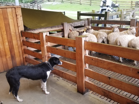 雨のため、羊の毛刈りと餌やりは中止だったのは残念ですが、羊の犬追いは見れました。