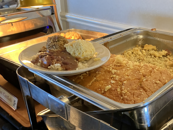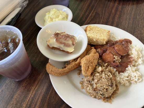 母が渡米してきたので、一緒に行ってきました。ランチ付きクルーズはこのサイトでは24時間前までしか受付ができなかったようなので私の分は他のサイトから予約しました。前回はクルーズのみでしたけど、今回はせっかくなので南部料理を楽しみたいと思いランチ付きにしましたが、全部食べ尽くすことができました。ランチには紅茶やお水コーヒーも付いていたので、それ以外に料金はかかりませんでした。