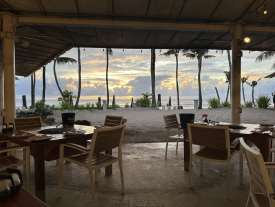別のホテルに泊まっていたのですが、当日ホテルまで迎えがあり、夕日が沈む前に到着して海を眺めながら食事を始めることができました。店員さんの気遣いが良く、いろいろと気にかけてくださり助かりました。ご飯の途中でファイヤーダンスショーが始まり、とてもかっこよく圧巻で食べることを忘れたほどでした!ショーの後もパフォーマーの方と一緒に踊る機会があったり、写真撮影ができたりと距離が近くとても楽しい時間を過ごすことができました。ご飯はボリューミーでお腹いっぱいに食べることができ幸せでした。素敵な時間になりした。また行きたいです。