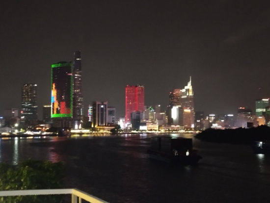 サイゴン川クルーズは生憎の雨でしたが、夜景はきれいでした。ディナー会場は他の人のコメントにもあった通り音がうるさかったです。ガイドさんの話では、地元の方はここで誕生日会をやるようです。